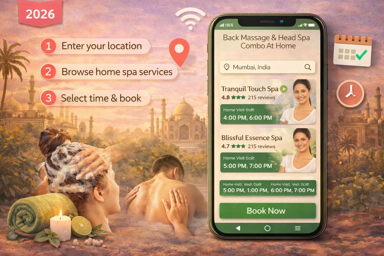 how to book back massage and head spa combo at home India 2026
