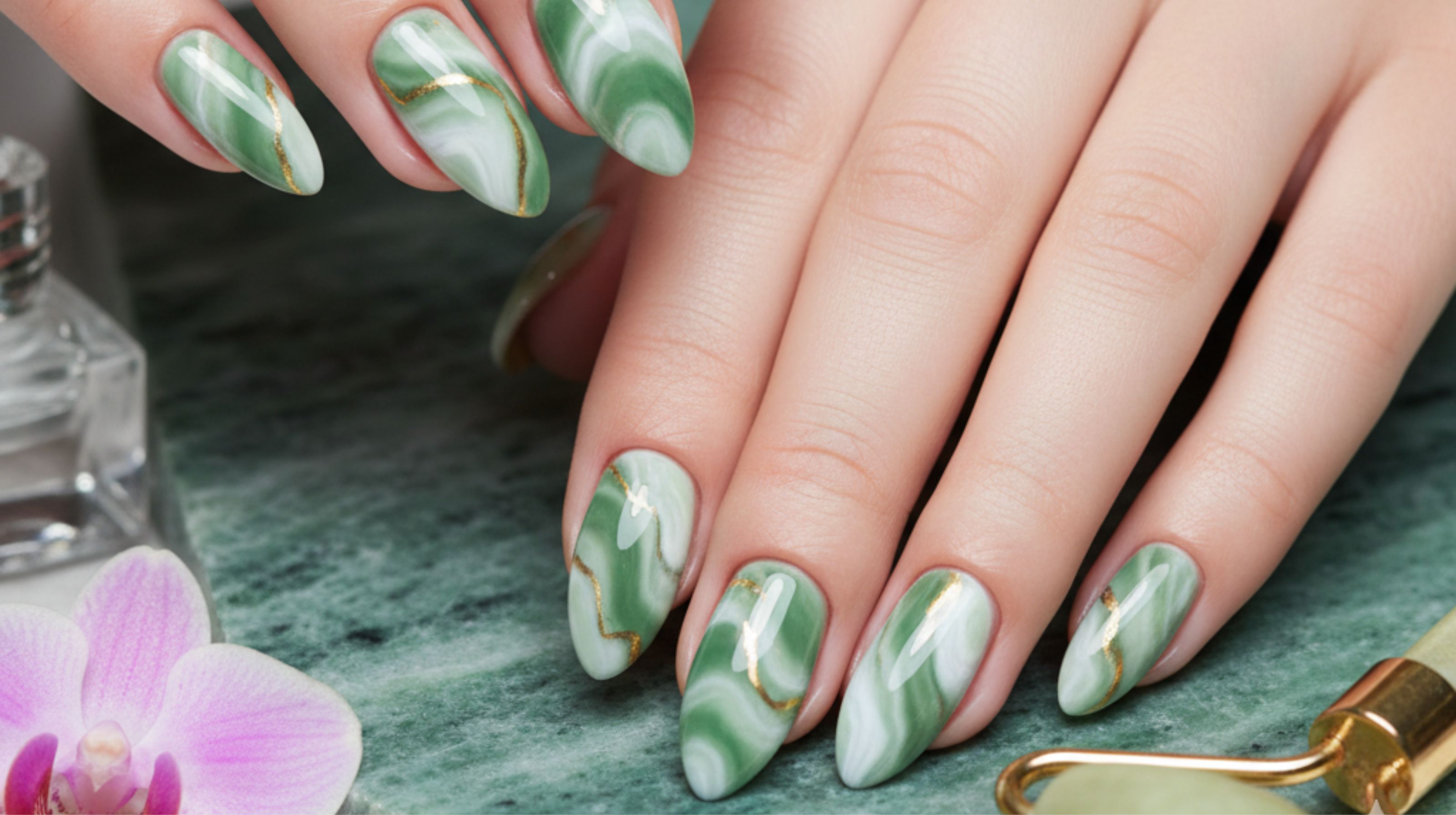 ### The Whispered Charm of Jade Marble Nails
