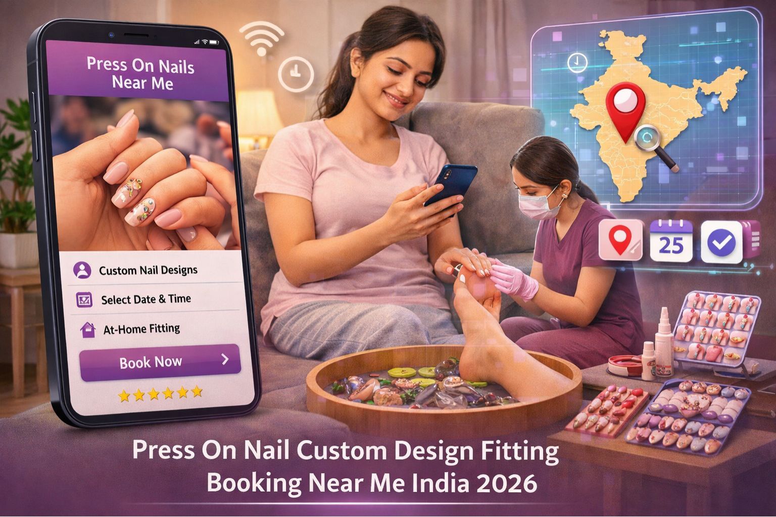 press on nail custom design fitting booking near me India 2026