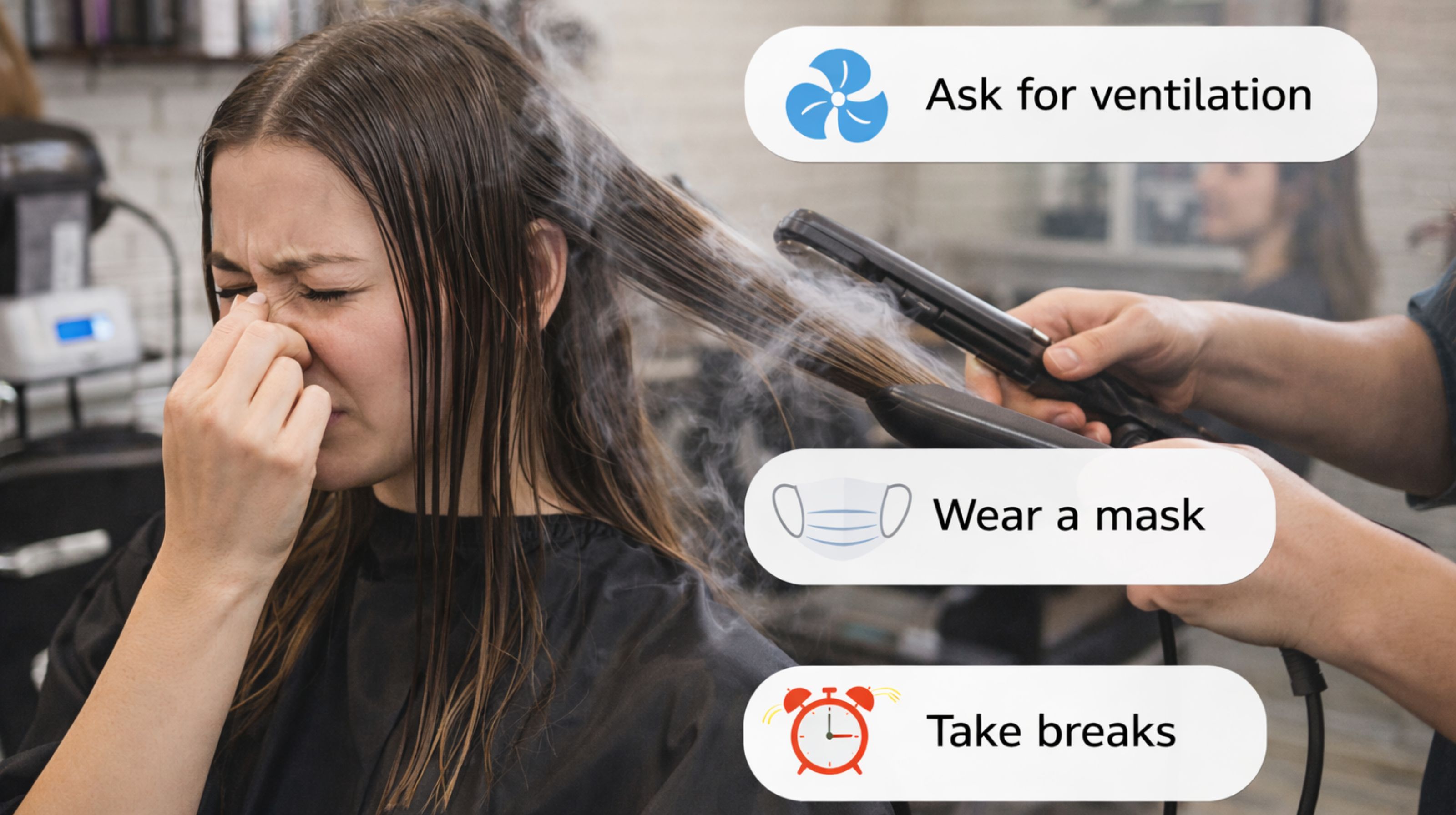 Basically, you're smelling formaldehyde—or chemicals that release it—breaking down as the heat seals it all in. It's the sound of the chemical reaction working, you could say. The intensity really depends on the brand your salon uses; some formulas are just way more pungent than others.